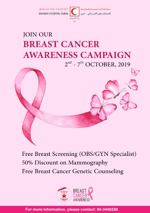 October is Breast Cancer Awareness Month, Join Iranian Hospital’s annual campaign focused on increasing awareness of the disease, the importance of early screening to effectively tackle the disease and to get timely treatment.