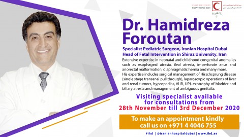 Iranian Hospital Dubai is please to introduce Dr Hamidreza Foroutan, Specialist Pediatric Surgeon with extensive expertise in the surgical intervention of neonatal and childhood congenital anomalies.