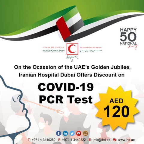 Offer special rates for Covid-19 RT-PCR testing December 5, 2021 News On the occasion of the UAE’s 50th National Day, we are pleased to offer special rates for Covid-19 RT-PCR testing. This discounted rate is available at the Iranian Hospital’s Covid-19 testing facility. Older Post 50th UAE National Day Offer-50% discount on ALL of our physician consultation Newer Post On the occasion of the UAE’s Golden Jubilee