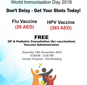 World Immunisation DayDon’t Delay – Get Your Shots Today! HPV Vaccine (393 AED)Flu Vaccine (26 AED)FREE GP & Pediatric Consultation (for vaccination) Vaccine Administration Saturday 10th November 20189:00AM – 5:00 PMIranian Hospital, Old Building #ihd #iranianhospitaldubai #WorldImmunisationDay#immunisationday #Pediatric #vaccination #iranianhospital #dubai #hospital