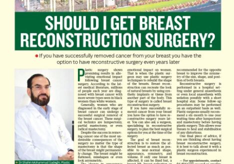 Breast cancer is the most common cancer diagnosed in women, accounting for more than 1 in 10 new cancer diagnoses each year. Read the article by Gulf News featuring our CEO Dr Shahin Mohammad Sadeghi (Specialist Plastic and Aesthetic Surgeon) elaborating on breast reconstruction after breast cancer surgery and Dr Imran Abbas (laparoscopic Weight Loss…