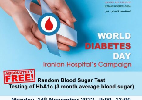 World Diabetes Day is marked every year on 14 November. To help raise awareness Iranian Hospital Dubai is providing a one day screening offer:Offer: Free Random Blood Sugar Test and HbA1c and Blood Sugar TestWhen: 14th November 2022; 9:00AM to 1:00PMWhere: Iranian Hospital DubaiHow: Walk-in and request for the offer